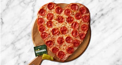 Just when you think our pepperoni pizza couldn’t get any tastier, we craft the ultimate masterpiece. Our original fresh dough is covered with signature pizza sauce, 30% more pepperoni than our traditional pie, a blend of Parmesan and Romano, and real cheese made from mozzarella, all sprinkled with classic Italian seasoning.