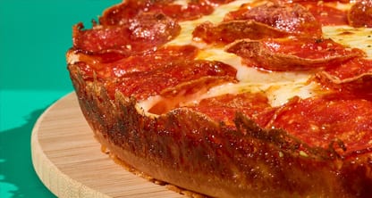 Just when you think our pepperoni pizza couldn’t get any tastier, we craft the ultimate masterpiece. Our original fresh dough is covered with signature pizza sauce, 30% more pepperoni than our traditional pie, a blend of Parmesan and Romano, and real cheese made from mozzarella, all sprinkled with classic Italian seasoning.